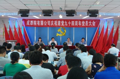 7月1日下午,成都建材院有限公司全体党员在十二楼多功能厅隆重集会,热烈庆祝中国共产党建党九十四周年。公司董事长焦烽、党委书记申安昌、总经理吴宏、党委副书记冯艳等公司领导及全体党员参加了庆祝大会。