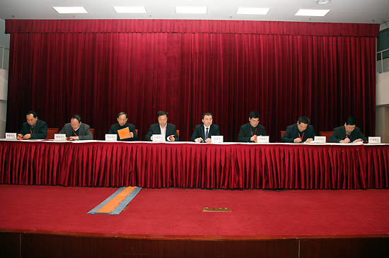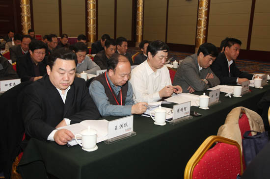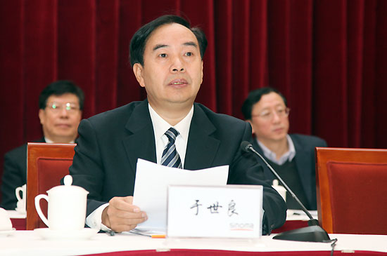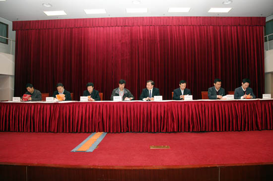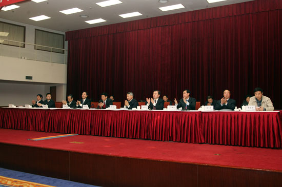 国有重点大型企业监事会主席罗汉,中国建筑材料联合会会长乔龙德,监事会25办主任陈琦良,中国建材报社社长杨军,中国建材杂志社社长秦春雨;集团董事长刘志江,党委书记于世良,总经理李新华,外部董事杨育中、张来亮、张秋生、徐立鹏、于吉,副总经理张海、李建伦、于国波,党委副书记、纪委书记张江,总会计师徐卫兵出席会议。