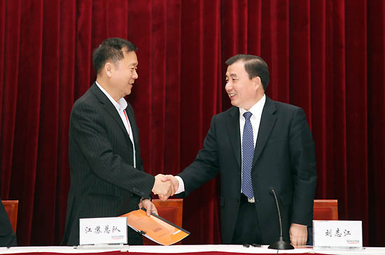 会上,刘志江与所属49家单位分别签订了2014年经营业绩责任书和2013-2015年任期经营业绩责任书。