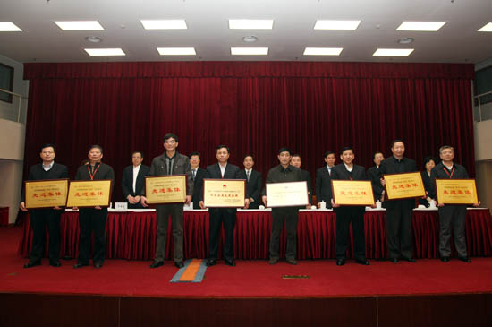 会议表彰了集团创建“四好班子”先进集体,天山建材集团、地勘广东总队、中材装备粉体公司、中材矿山兖州公司、中材水泥罗定公司、宁夏建材六盘山公司等6家企业被授予“四好班子”荣誉称号。2013年10月,申博太阳城天津公司俄罗斯FER项目部和地勘辽宁总队被国家人社部、国资委授予“中央企业先进集体”。集团领导为创建“四好班子”先进集体和“中央企业先进集体”代表颁发了奖牌。