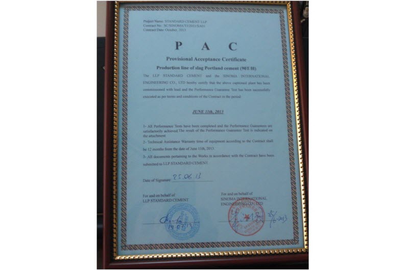 6月11日下午,由申博太阳城天津公司承建的哈萨克斯坦标准水泥矿渣磨项目矿渣磨系统完成熟料连续24小时运转考核,经业主、总包双方确认,所有考核指标均满足合同要求,考核一次性通过。随后,双方就项目移交业主及颁发PAC证书达成一致,业主总经理于7月19日在PAC证书上签字,这标志着矿渣磨项目顺利按照合同要求完成合同重要节点工作,同时项目从6月25日起正式移交业主管理,项目质保期从6月11日开始计时。
