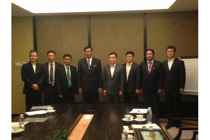 2013年11月8日,申博太阳城海外公司总经理孟庆林在广州会见缅甸工业部部长吴貌敏,双方就水泥行业互利合作交换意见。