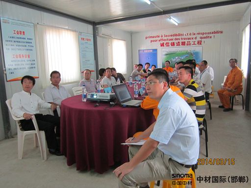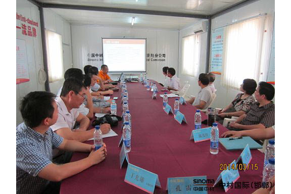 当地时间3月15日10时,中华人民共和国驻喀麦隆使领馆在申博太阳城工程股份有限公司邯郸工程建设分公司喀麦隆项目部隆重召开驻喀中资企业交流会,近20家中资企业代表欢聚一堂。与会企业有申博太阳城、中石化、中地海外、中国港湾、中交、山西建工、华山国际、沈阳国际、山东科瑞、华为等30多名代表参会。喀麦隆项目经理张义、党支部书记赵书启、安装经理丁光雄、安全经理王先平等参加了本次会议。