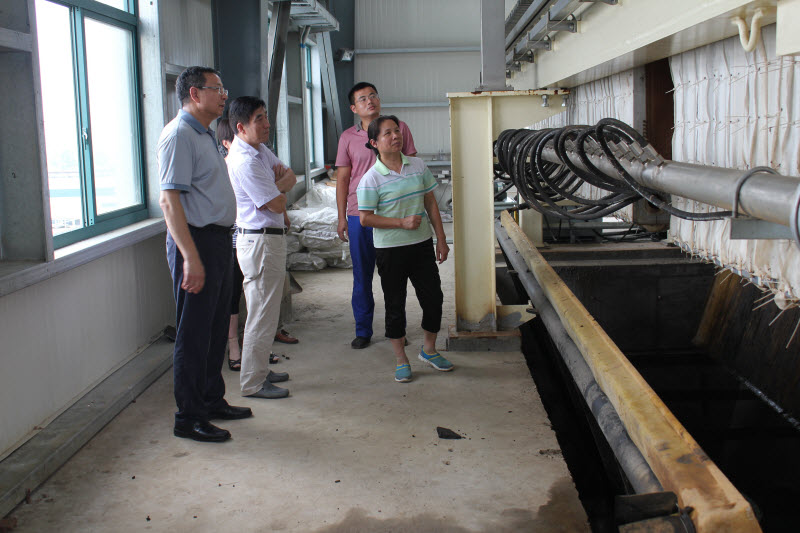 于国波详细察看了正在运行的污泥调质、压滤及泥饼卸料等整个污泥脱水流程及各个车间,在中控室详细询问了工程建设、调试服务、运行参数和污泥脱水技术经济指标。